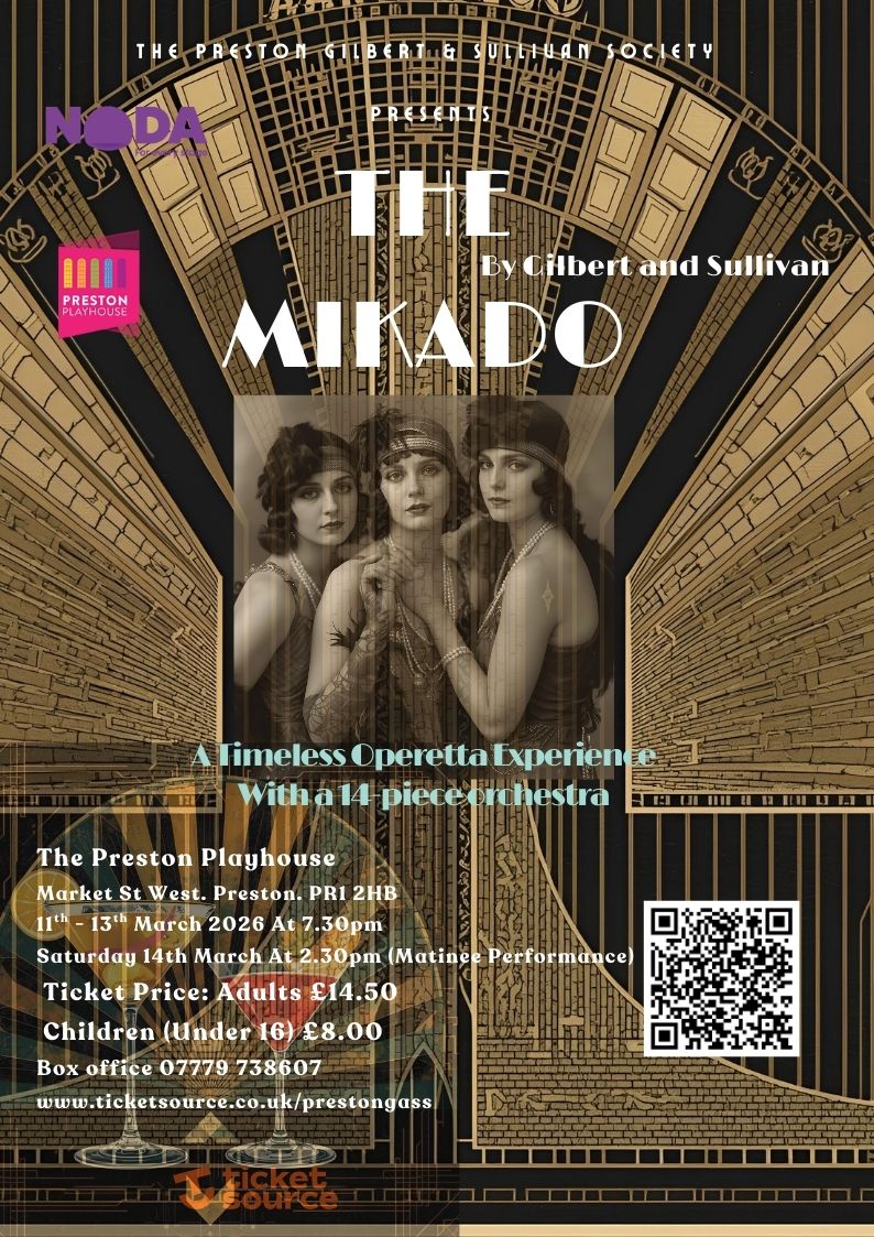 Nanki-Poo, the son of the powerful Mikado (the city’s mayor), arrives in disguise as a jazz musician, fleeing an arranged marriage to the formidable Katisha. He is in love with Yum-Yum, a glamorous chorus girl engaged to Ko-Ko, the city’s bumbling nightclub owner who has recently been promoted to the unlikely position of Lord High Executioner to avoid his own execution for a minor infraction.
